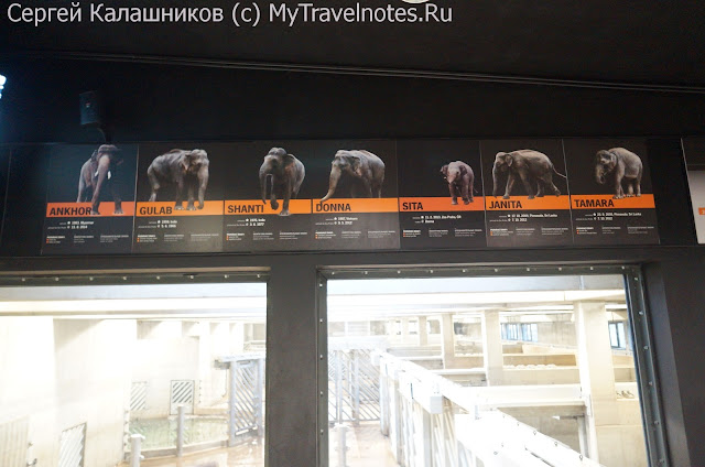 Внутри также можно на них посмотреть. Как их моют, как заводят в свои комнаты. Тут же можно почитать о самих слонах, узнать их имена. Как видите, сегодня в Пражском зоопарке живет 7 этих животных.